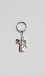 Tento andělíček je ozdoben fialovým srdíčkem.
