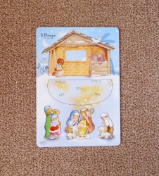 Postavičky i domeček lze lehce vyjmout z dřevěné desky