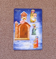 Postavičky i kostel lze lehce vyjmout z dřevěné desky
