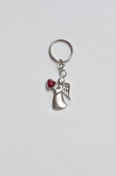 Tento andělíček je ozdoben červeným srdíčkem.