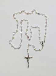 Barva stříbrná, korálky bílé s barevným leskem, skleněné, matné.