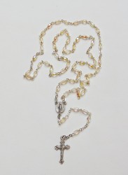 Barva bílá, průhledné perličky s leskem, protáhlého tvaru, skleněné, stříbrný