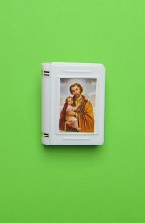 Pouzdro má podobu knihy, je rozevírací, na zacvaknutí.